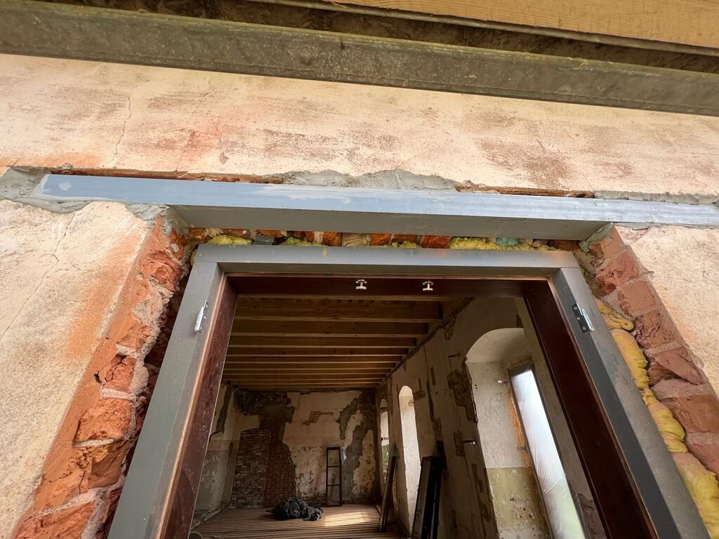 Logu montāža, aiļu pārsedžu pastiprināšana;