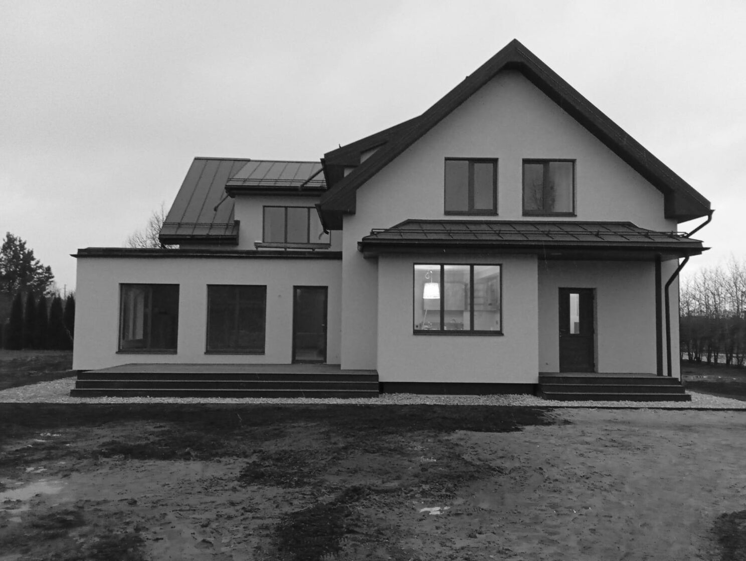 Iekšējie un ārējie apdares darbi, drenāžas sistēmas izbūve un teritorijas labiekārtošana